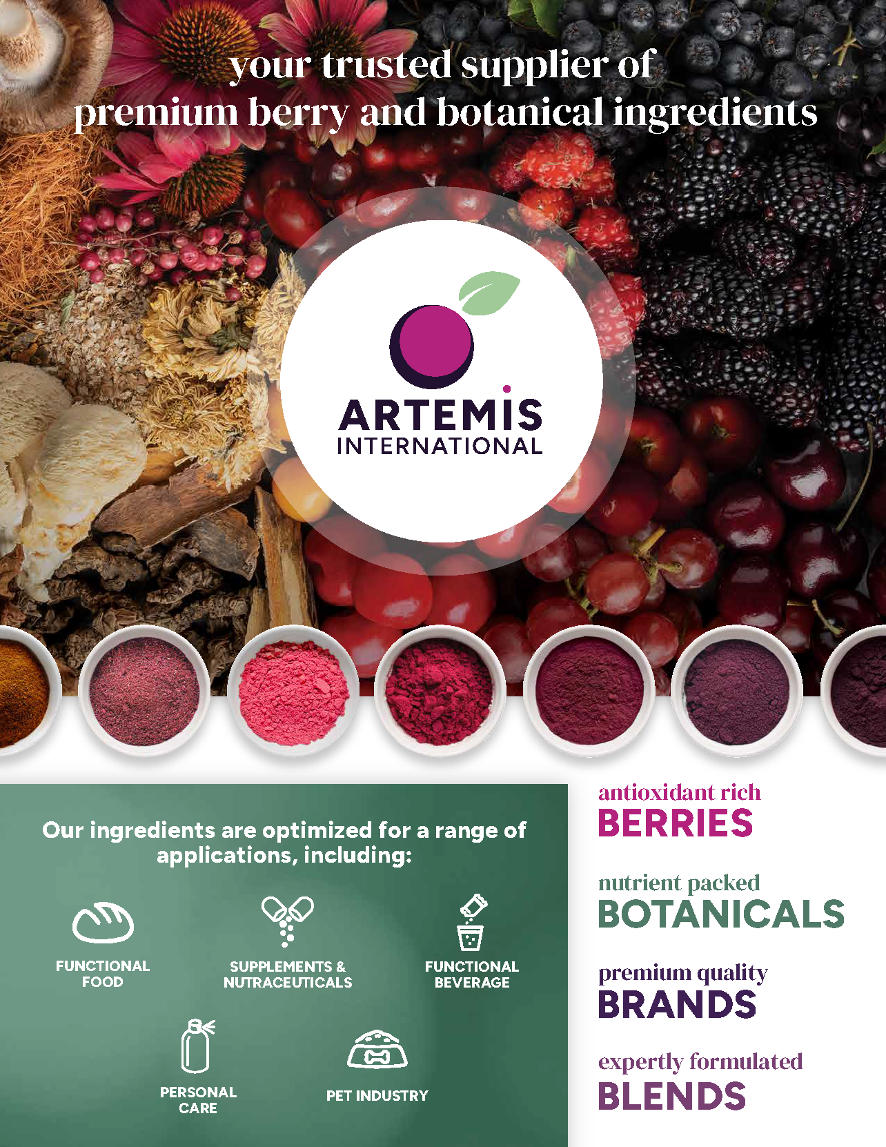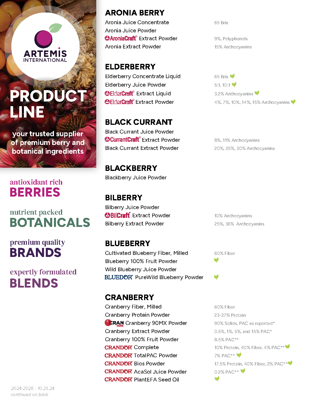 I designed a new expanded product line (above) and bifold brand brochure (below) for distribution at industry events including SupplySide West 2024.